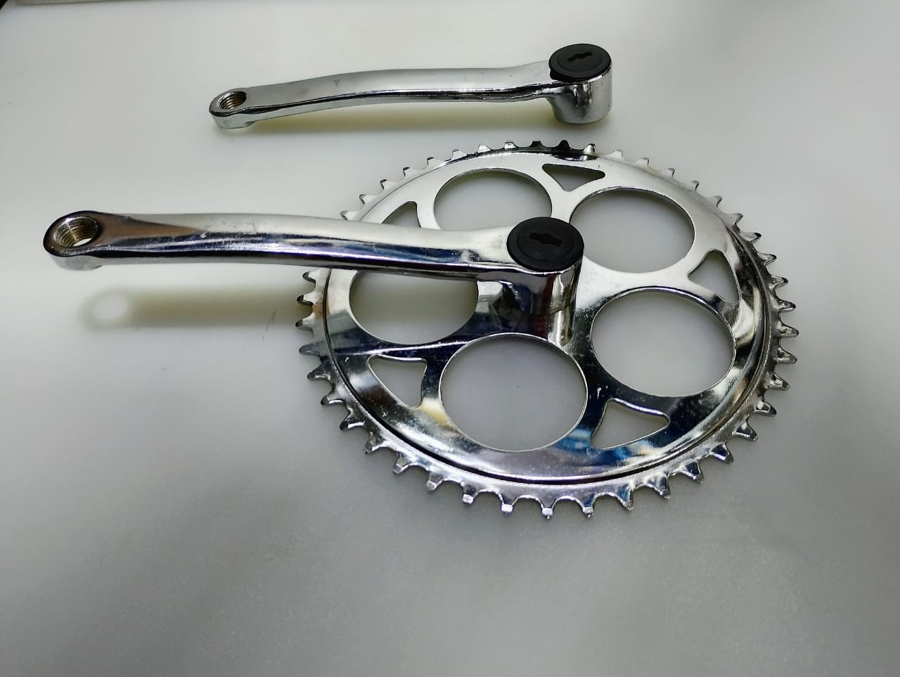 Plato y palanca de acero, eje cuadrado.